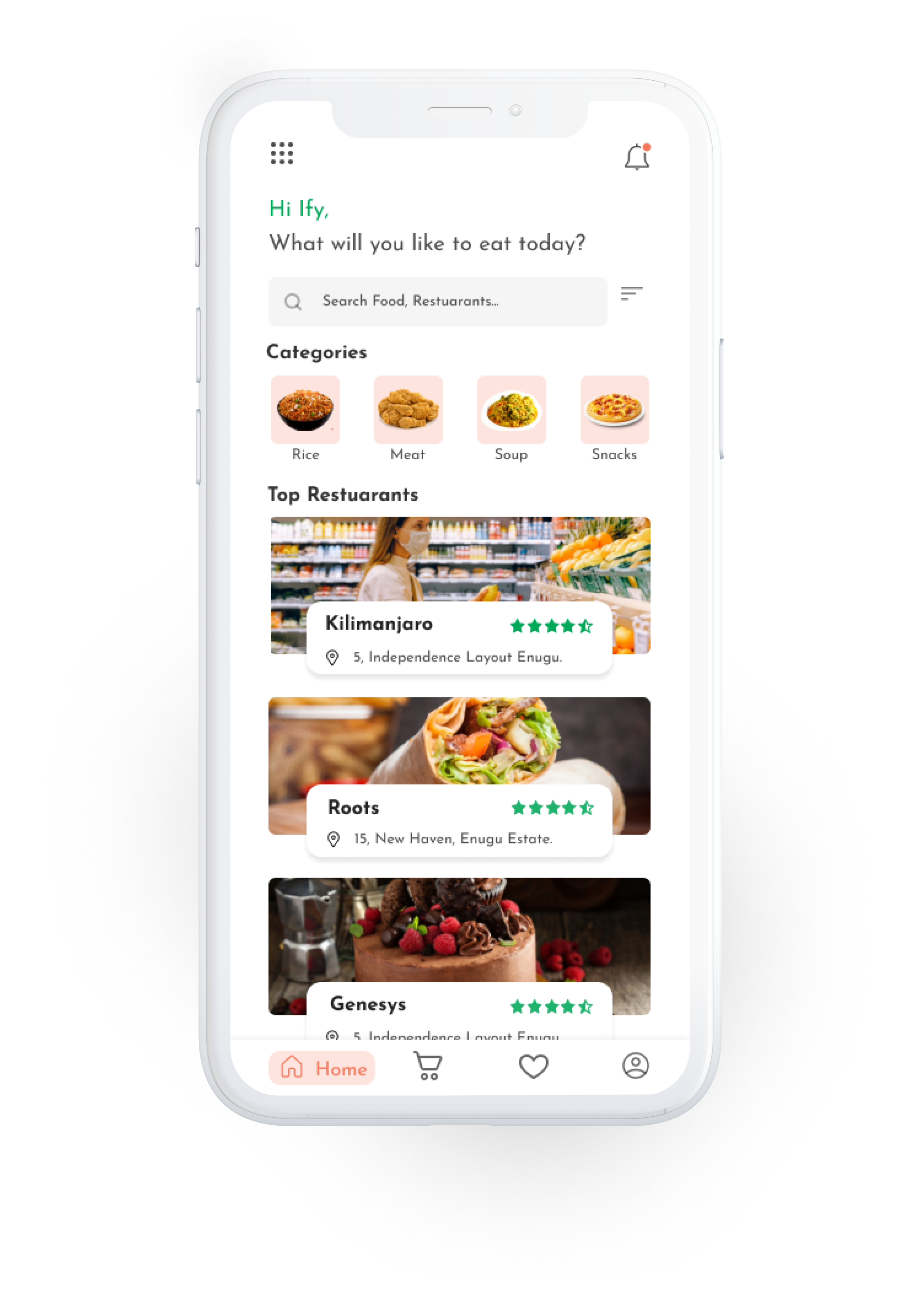 A food ordering application to ease the delivery of the food and drinks (on-the-go) across eateries for metropolitan residents of Enugu state, Nigeria. These residents can easily order food or drinks from their favourite restaurants or eateries without hassle.